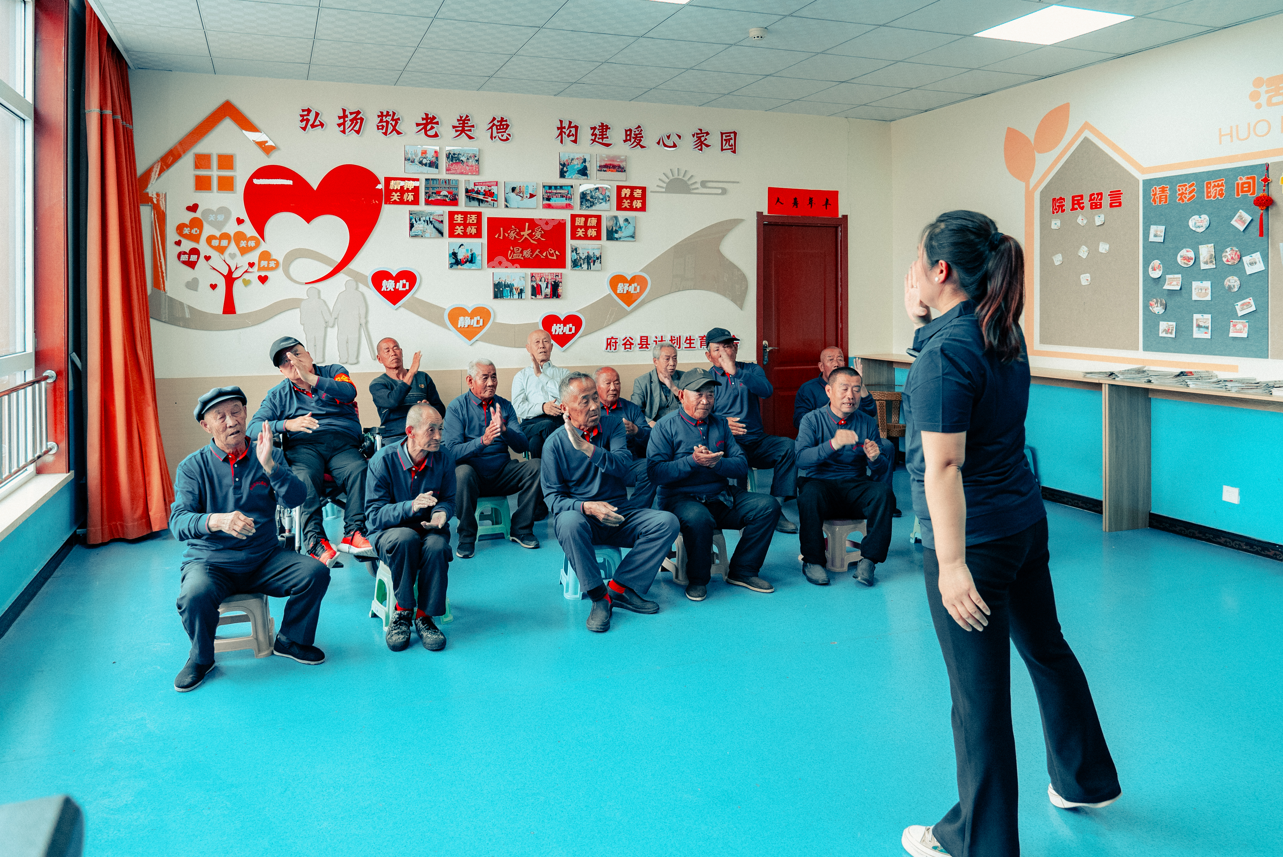 中午11点,府谷新区阳光社区日间照料中心邻里食堂的饭菜香味便四溢开来,居民们纷纷提前来到院子里,一边聊天一边等待着午餐的时刻。在这里,70岁及以上的老人仅需支付5块钱,便能享受到全天三餐的温馨服务。