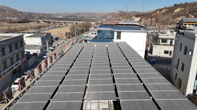 冬日的沙峁镇,处处涌动着发展热潮。在沙峁村的学校、办公楼的屋顶上,一块块光伏板整齐排列,在阳光下熠熠生辉。这是沙峁村与榆能杨伙盘煤电有限公司合作共建的1.5兆瓦屋顶分布式光伏发电项目,经过数月建设已全面竣工投产,成为村集体的“阳光银行”。