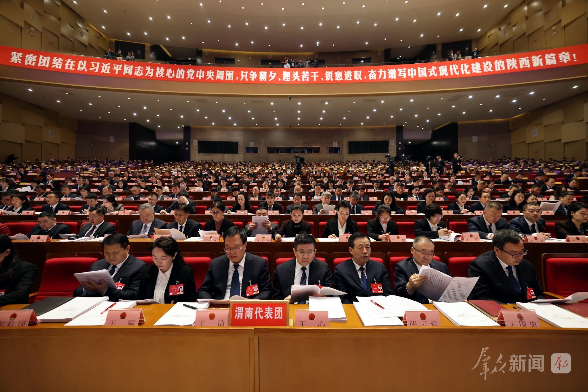 渭南代表团全体会议上,代表认真记录。