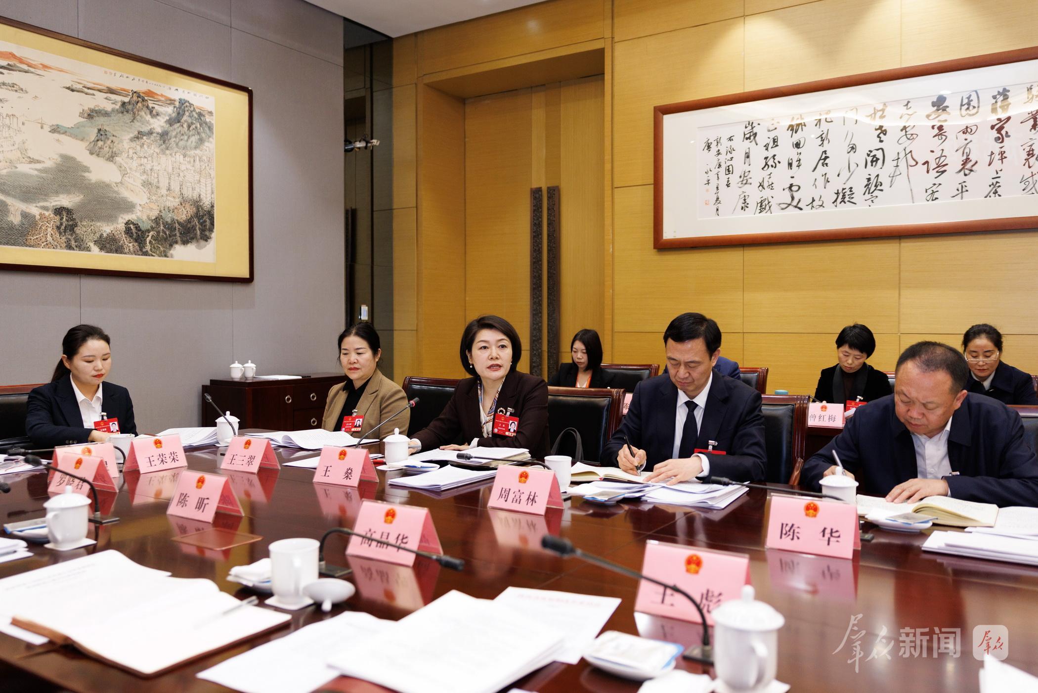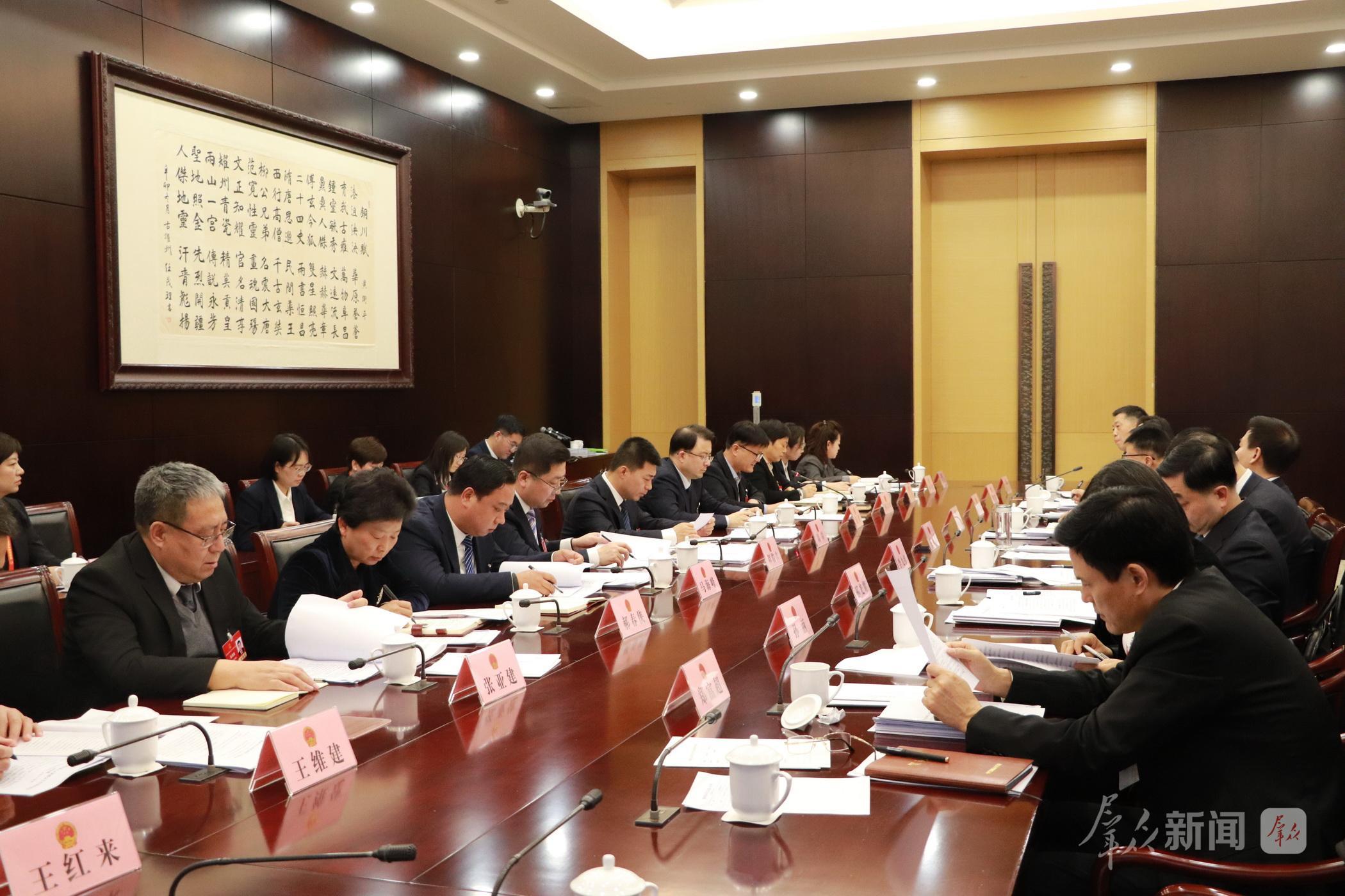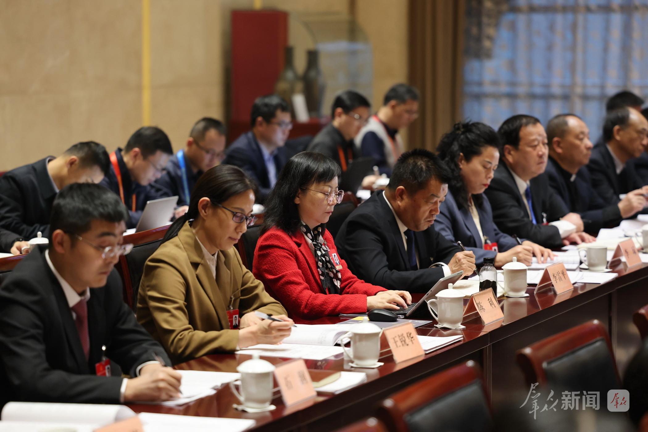 铜川代表团全体会议上,代表们审议省人大常委会工作报告。