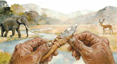 西沟装柄石器制作(倚靠式)复原图。