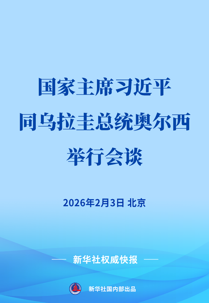 2月3日,国家主席习近平在北京同来华进行国事访问的乌拉圭总统奥尔西举行会谈。