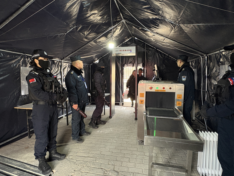 1月30日,在碧麟湾滑雪场入口,特警队员正利用专业设备开展常态化巡逻,对人员通道、器材存放区等重要区域进行全方位安全隐患排查。为全面提升赛事安保等级,神木市公安局构建起立体化安保体系,科学设置了安检、巡逻、应急处突、交通疏导、无人机管控及综合指挥等专业化岗位,确保覆盖全面、响应迅速。