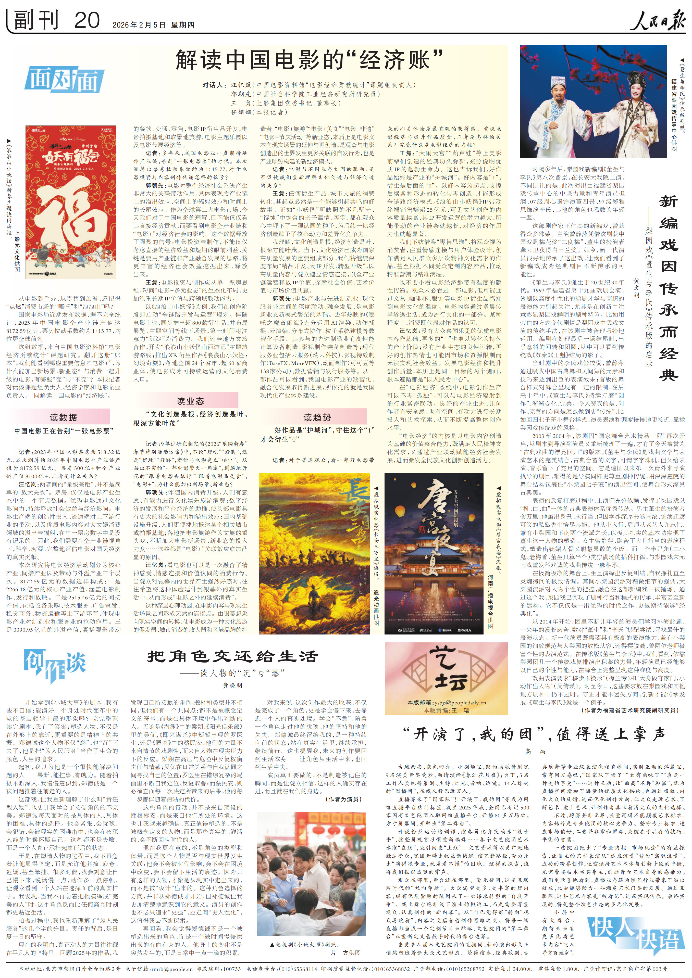 汪忆岚:没有大众喜闻乐见的优质电影内容作基础,再多的“+”也难以转化为持久的产业价值;没有产业生态的良性运转,再好的创作热情也可能因市场和资源限制而无法实现社会效益。发展电影经济和提升创作质量,本质上是同一目标的两个侧面,根本遵循都是“以人民为中心”。