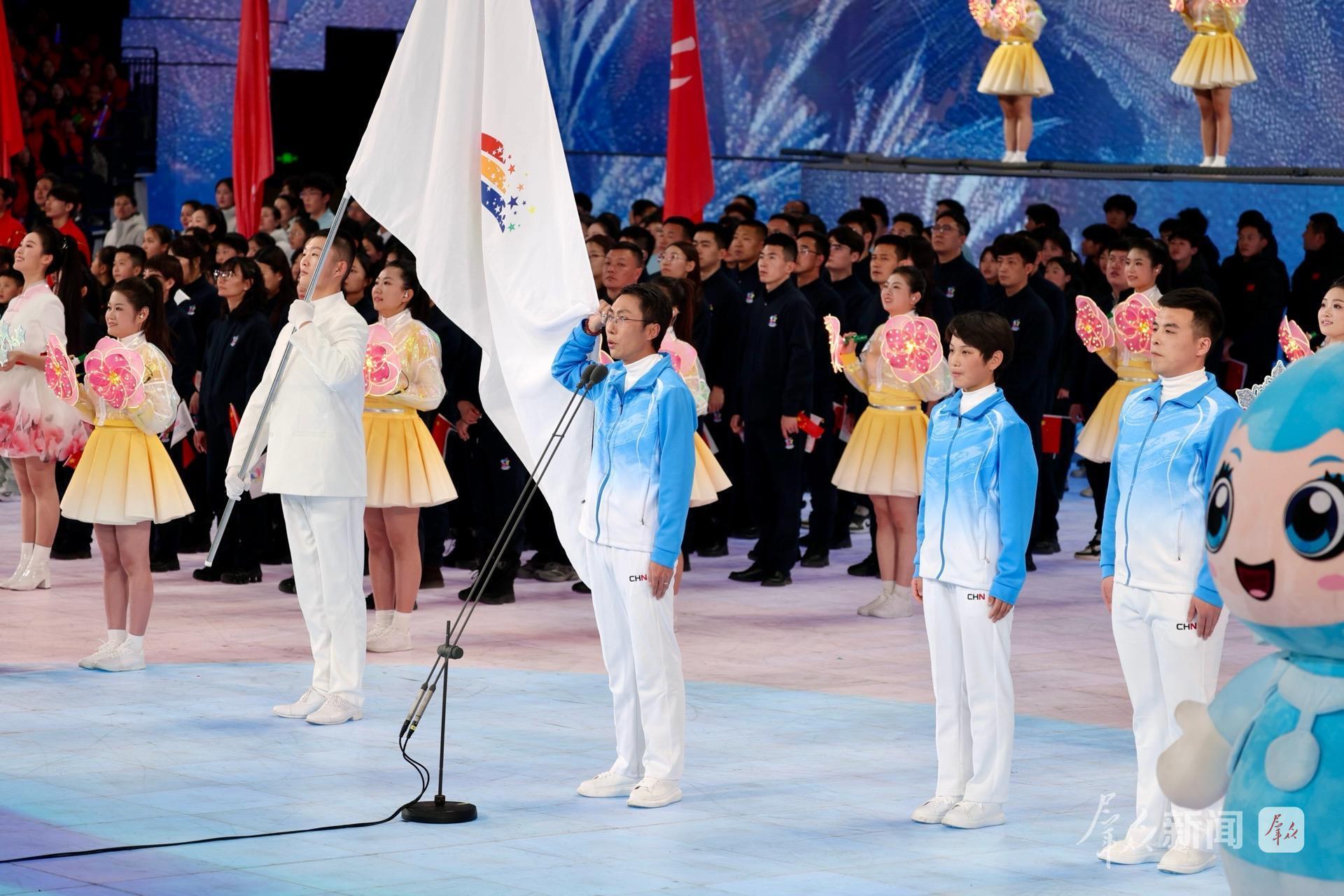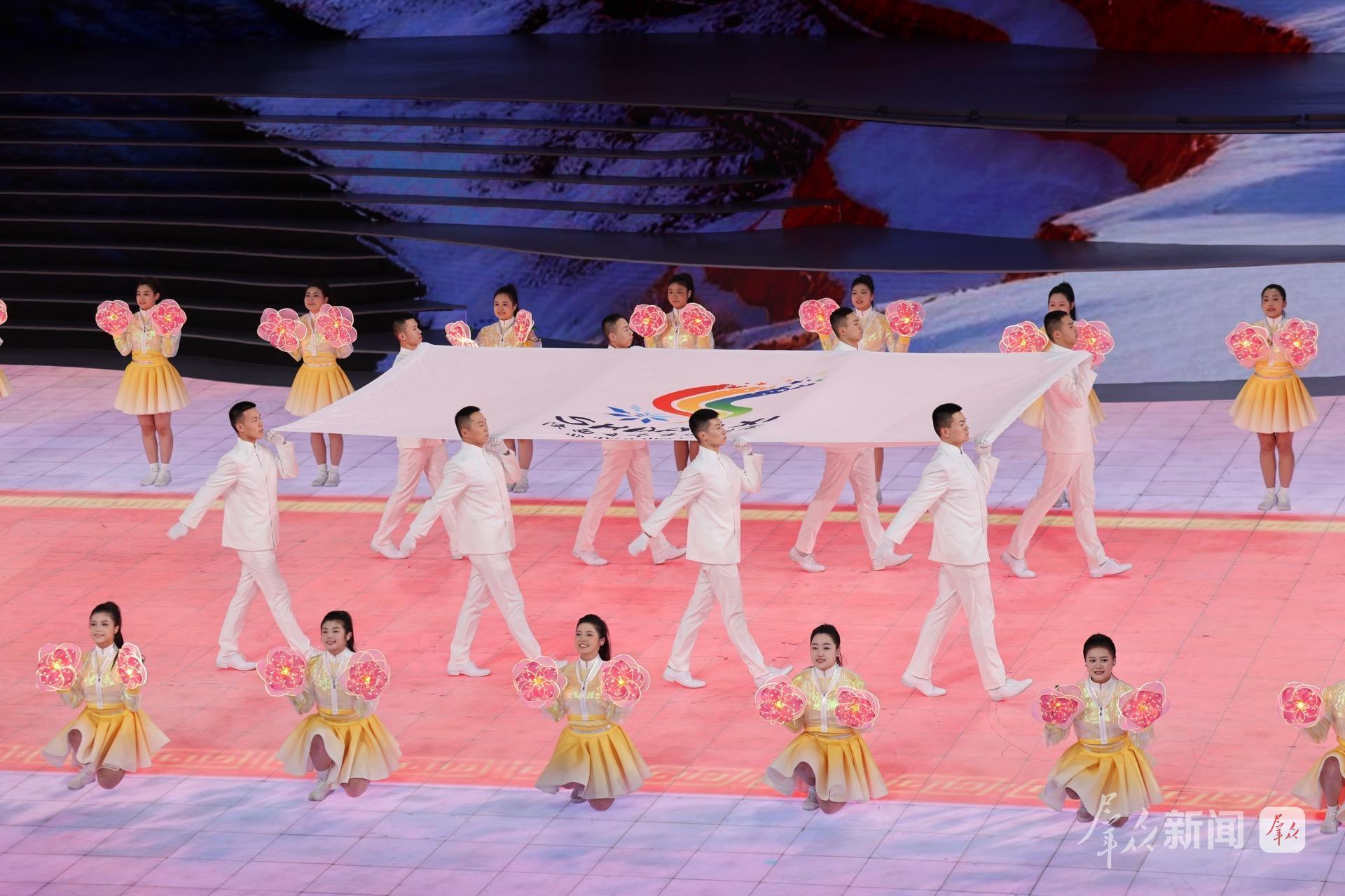 陕西省冬季运动会会旗入场。
