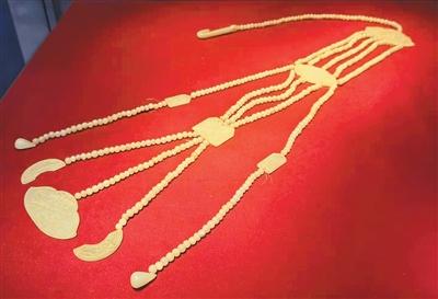 展览展出的四川成都凤凰山明蜀王世子墓出土的组玉佩。