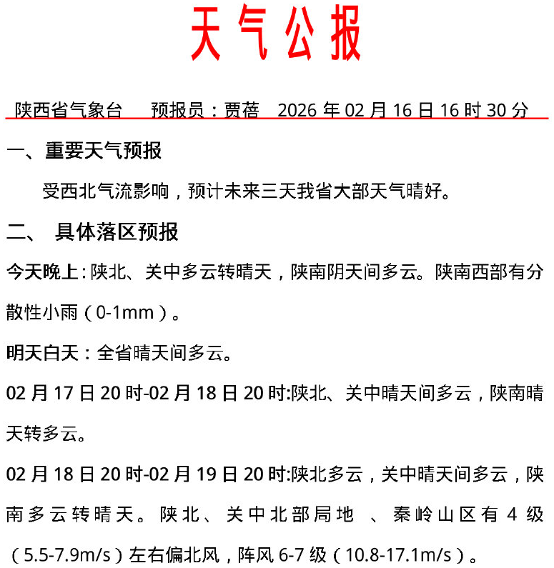 陕西省气象台2月16日16时30分
