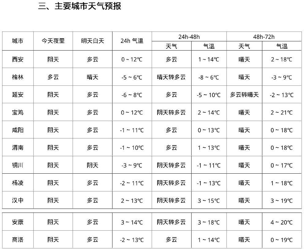 预计未来三天陕西省大部天气晴好