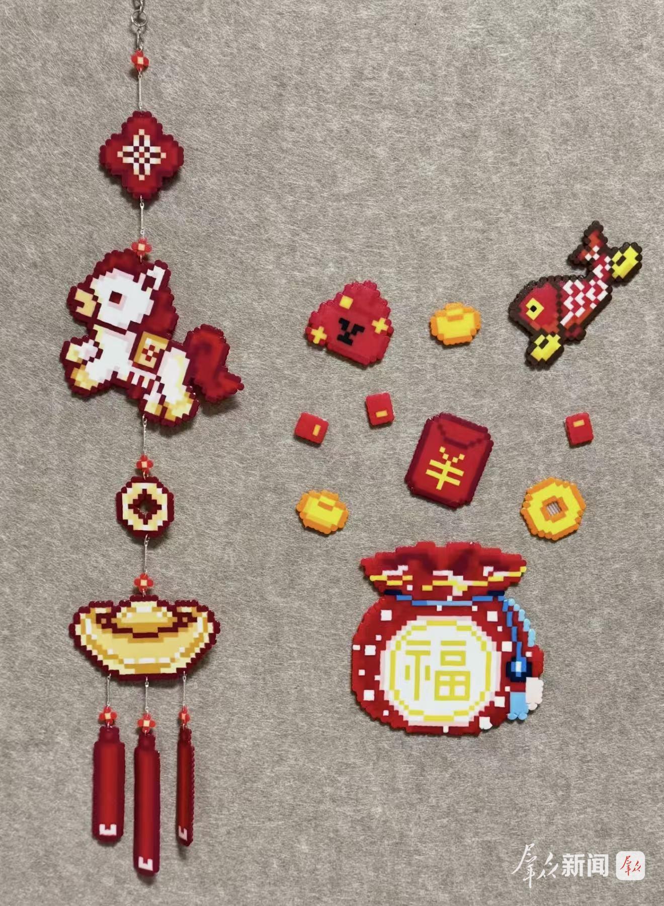 从挑选拼豆颜色到拼接成型,她耗时近3个小时。“亲手做的马年挂件既好看又有意义,还能送同学当新年礼物。新的一年,就想从这份与众不同的年货开始。”王佳琪说。