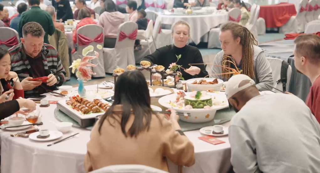西安城墙下的璀璨灯会中,岭南醒狮的铿锵鼓点里,东北农村热气腾腾的土炕上,体验地道年俗的外国游客直呼惊喜。