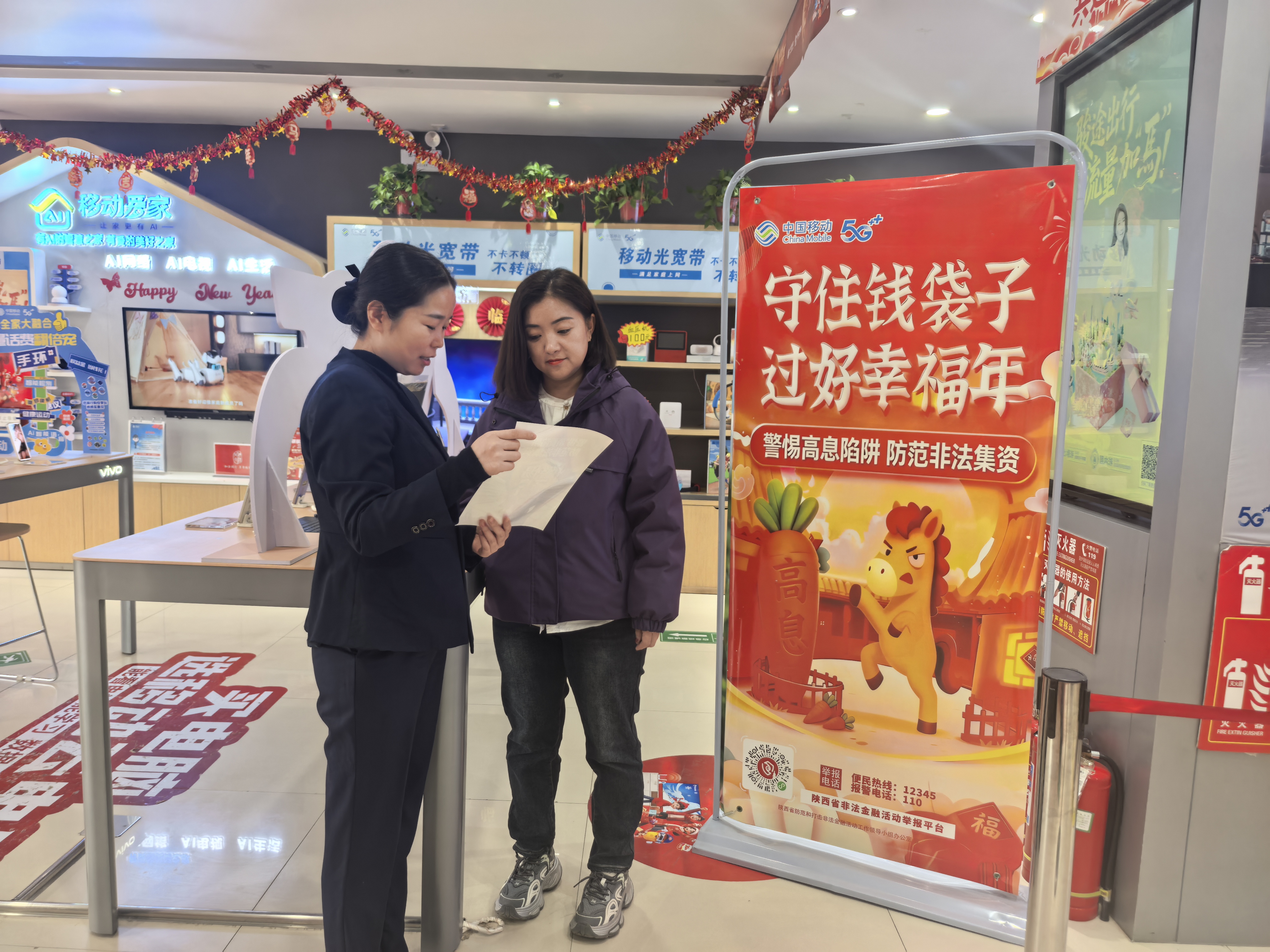 活动期间,延安移动充分发挥网点优势,以各营业厅及社区服务点为核心阵地,统筹全市宣传力量。各阵地不仅规范布置了“防范非法集资”宣传展架与横幅,更将“心级服务”品牌形象融入其中。