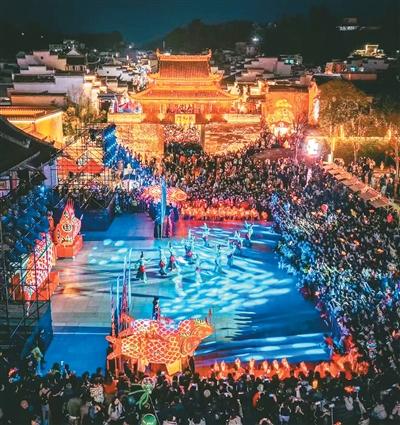 徽州古城的《大鱼徽州》鱼灯演艺秀吸引大量观众。
