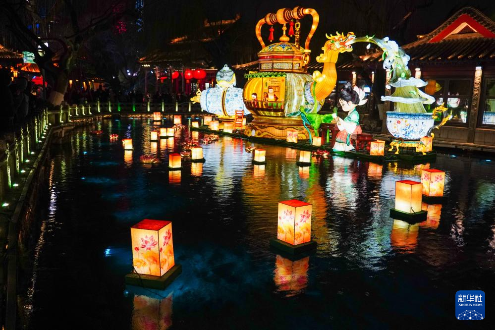元宵佳节临近,在济南天下第一泉风景区,色彩丰富、造型多样的彩灯沿泉畔点亮,与清澈荡漾的泉水交相辉映,为城市增添了喜庆祥和的节日气氛。