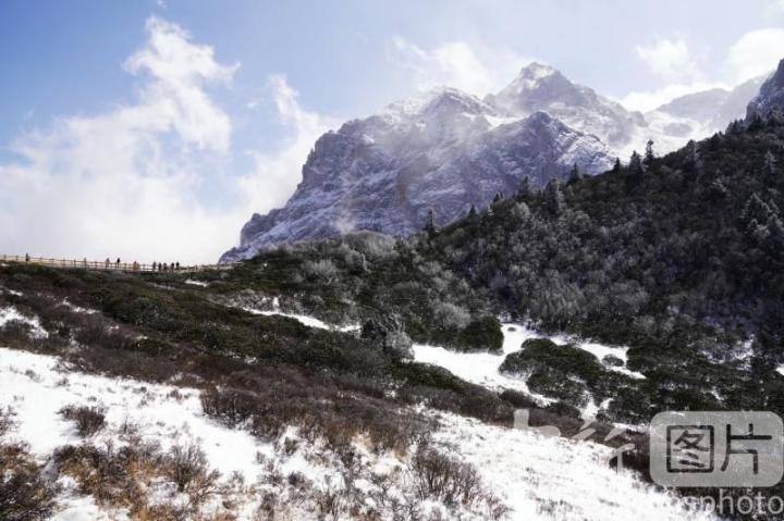 2026年3月1日,游客在甘肃省陇南市宕昌县官鹅沟景区雷古山欣赏雪景。
