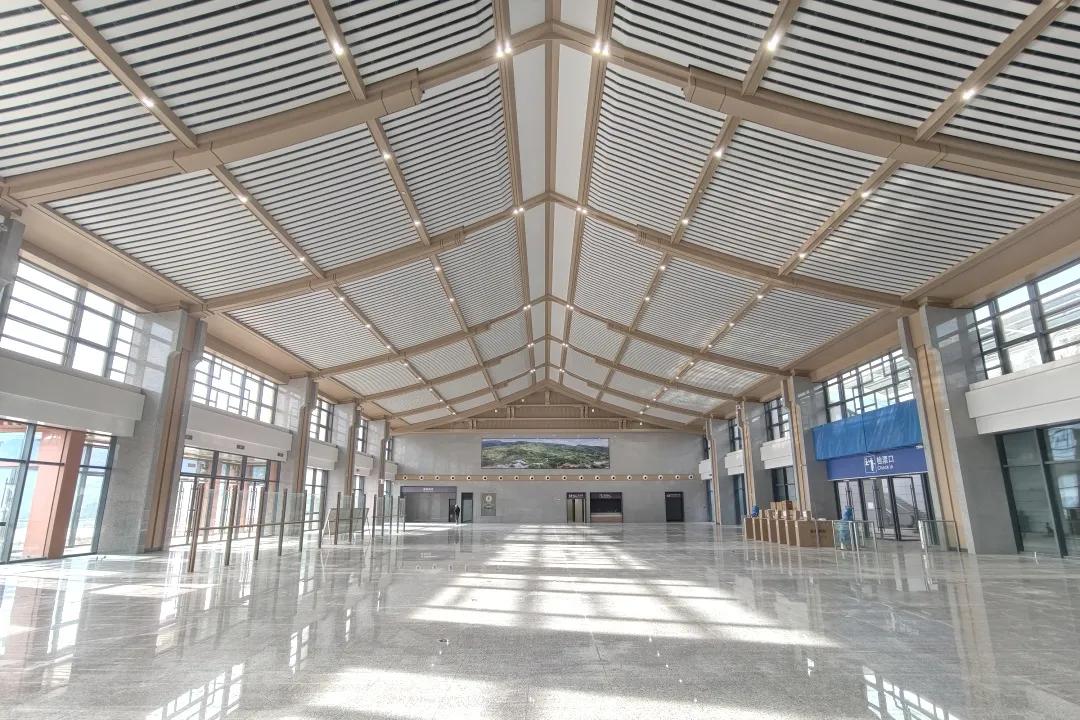 山阳站位于陕西省商洛市山阳县。站房以“峻岭崇山风光秀,平川美景画无边”为建筑创意,运用简洁的设计手法将当地自然地貌和地域特征融入建筑造型,打造出具有文化气息和艺术韵味的高铁站房。
