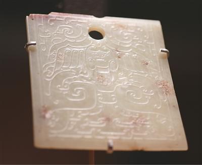 陕西神木石峁遗址出土的石峁文化鹰纹玉钺(陕西省考古研究院藏)。