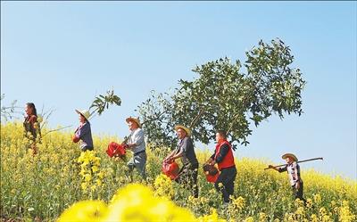 图为四川达州高新区幺塘乡锁口村,村民和党员志愿者参加义务植树。