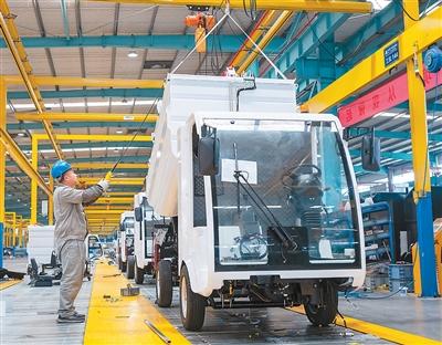 三月十七日,在安徽省芜湖市繁昌经济开发区一家汽车公司,工人组装新能源电动清扫车。