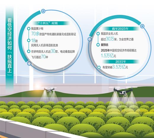 在山东、河南、四川等农业大省,无人机植保规模化应用,在重大病虫害统防统治中发挥重要作用;在云南、西藏等省份,无人机已在高海拔、高寒山区电网运维中实现覆盖,成为线路巡查的“主力”;今年春节假期,重庆连续上演7场无人机灯光秀,无人机表演成为促消费的有力助手……近年来,各地瞄准有效需求、结合当地发展实际,积极探索发展低空经济应用场景。