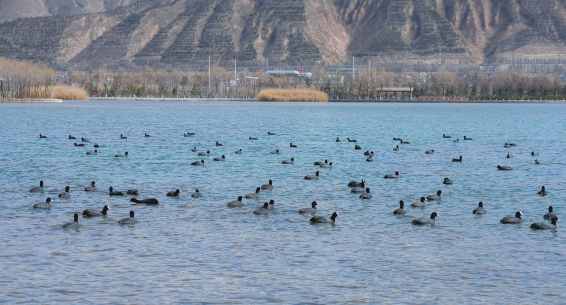 近日,随着天气转暖,大批白骨顶鸡重返定西湖。它们或在碧波中悠然游弋,或振翅追逐嬉戏,为春日的湖面增添了无限生机,成为一道灵动的生态风景线。