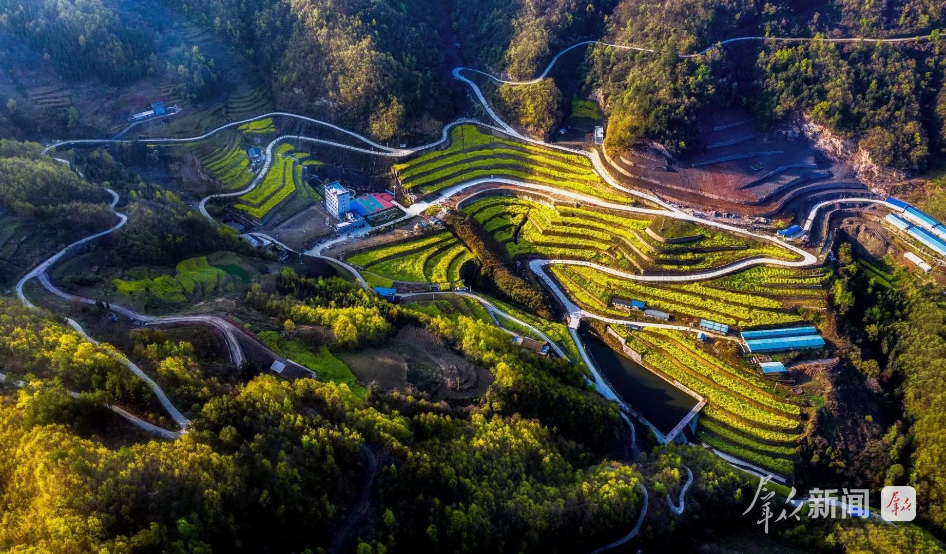 春日时节,驱车沿着蜿蜒山路进入西营镇柳树村,眼前豁然开朗:层层梯田依山而建,堰塘碧波荡漾,漫山遍野的油菜花竞相绽放,三五游人在步道上休闲漫步。这里是水田沟水利风景区,也是国家3A级旅游景区。