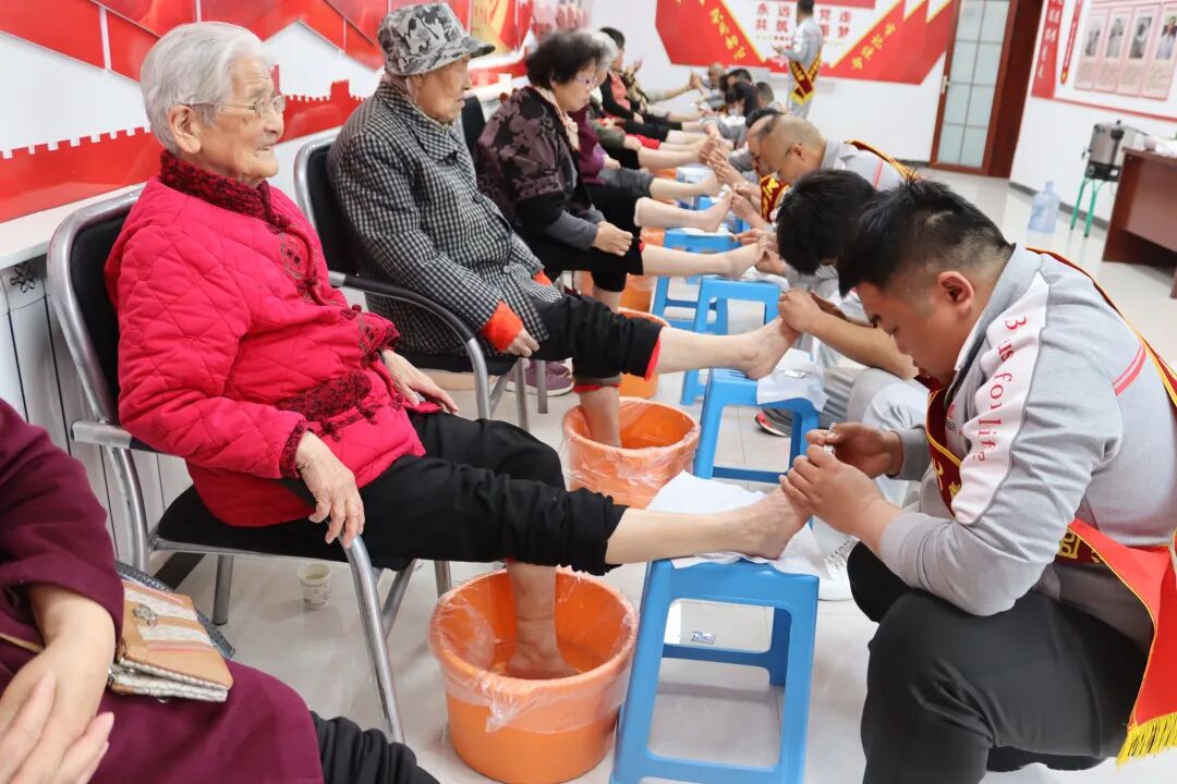 活动中,郑远元集团青年志愿者凭借专业技能,为老同志们逐一提供洗脚、修脚公益服务。服务过程中,志愿者们耐心细致,严格遵循卫生规范,针对老人足部不同状况精准操作,同时主动询问老人感受,贴心调整水温与力度,全程细致入微、温情满满。老人们围坐在一起,享受到干净、舒适的健康服务,脸上洋溢着舒心笑容,纷纷为志愿者的专业与用心点赞。