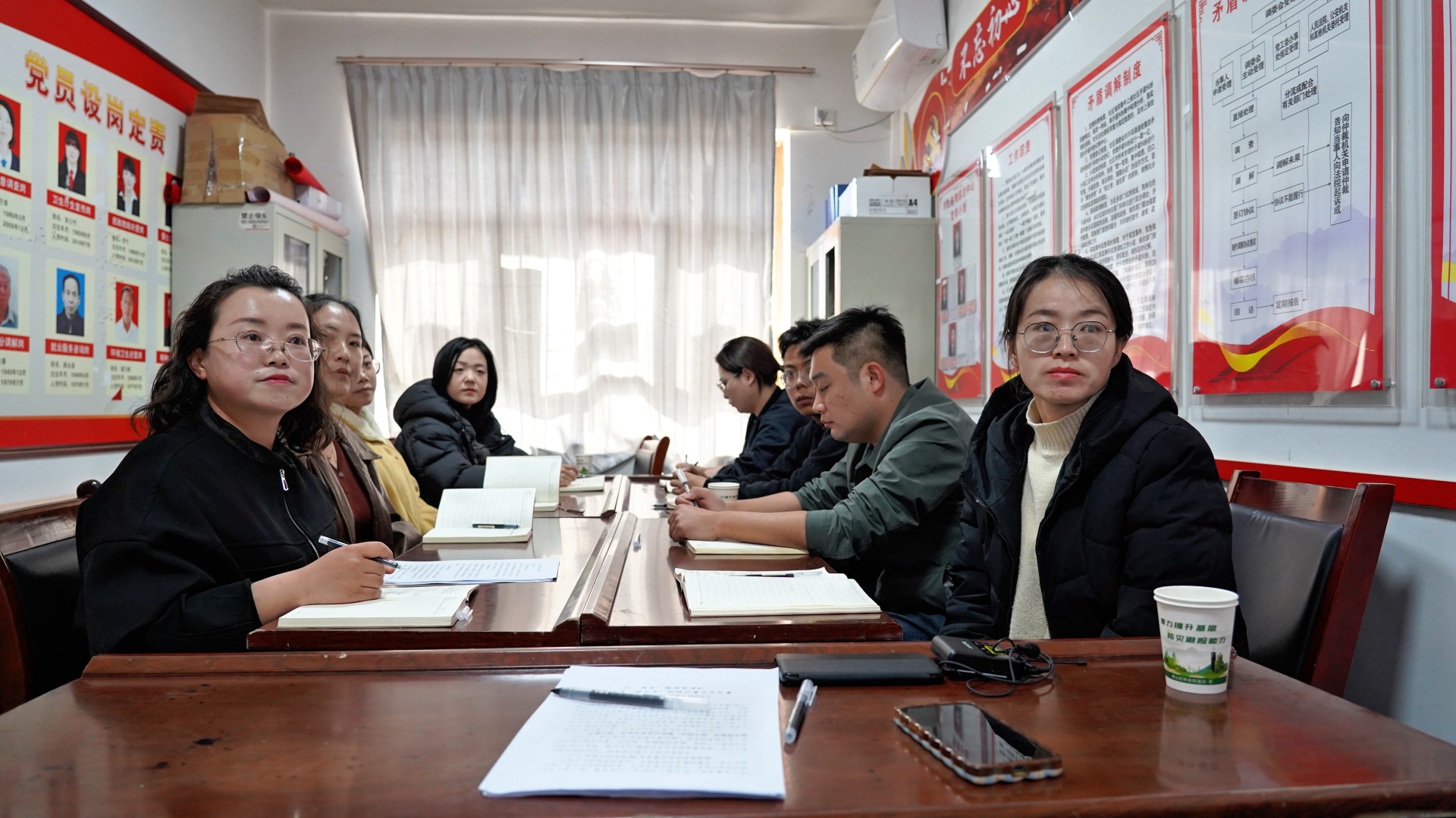 社区工作者、党员代表围坐一堂,神情专注、认真聆听,现场学习氛围活跃而浓厚。