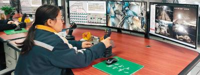 云南迪庆有色金属有限责任公司采矿厂电机车驾驶员在智控中心远程驾驶电机车。