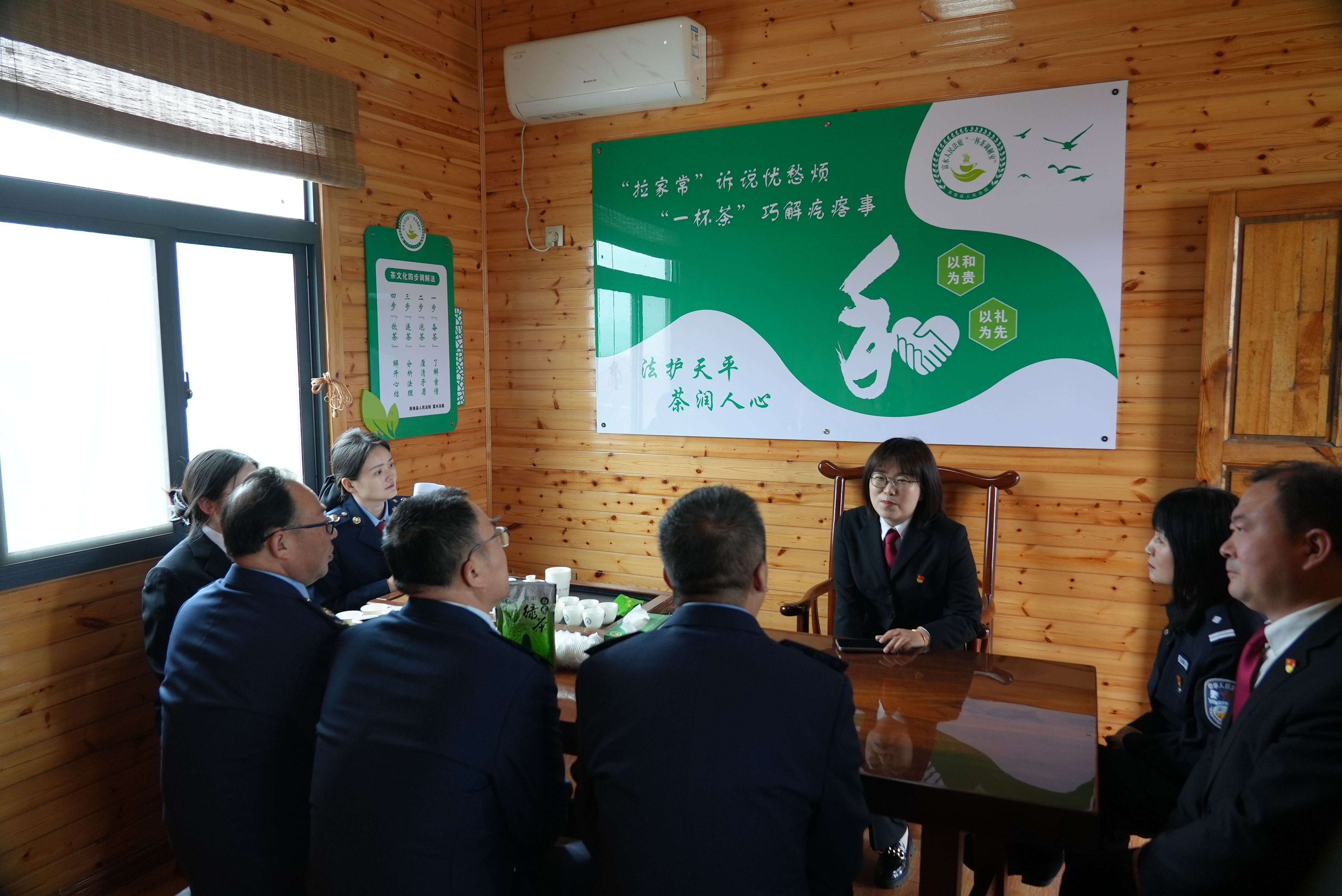 首先,法庭支部与税务局同志来到了富水法庭在茶海公园设立的“一杯茶调解室”,法庭庭长徐莉向大家介绍了该法庭为推动矛盾纠纷源头预防、实质化解,创新总结的“备茶”“泡茶”“递茶”“饮茶”茶文化四步调解法和在办案中采用“以茶为媒、以法为据”柔性调解解纷理念成功化解矛盾纠纷的典型案例。在商南县税务局,法庭支部及法庭干警同志参观了该局打造的省级枫桥式税务局“税费争议咨询调解中心”,学习了“鹿税红枫云课堂”建设和“枫润鹿城 红税先锋”党建品牌,并就两支部党建工作作了交流探讨。