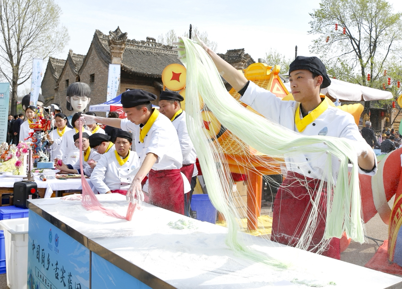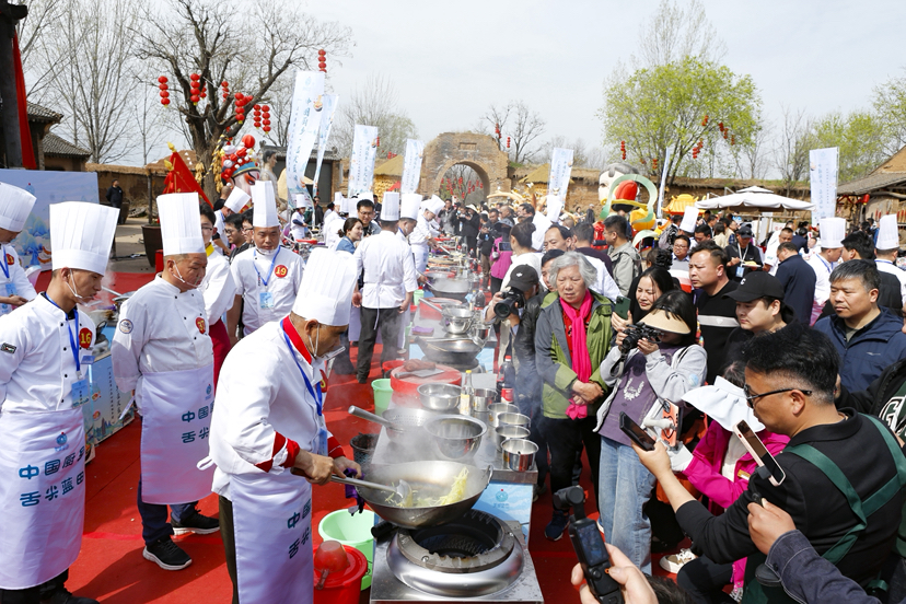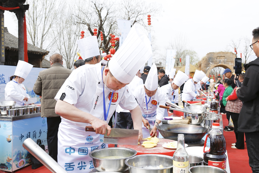启动仪式现场,42位村厨同台竞技,特定的刀工技能匠心演绎,展现了“蓝田勺勺客”的精湛技艺与乡土美食的独特魅力。赛场之外,农特产品展销区、非遗市集、电商展销区同步联动,柿子醋、土蜂蜜、蓝田玉等特色产品集中亮相,“线下体验+线上下单”的模式让蓝田好物直抵消费者。与此同时,赛事为白鹿原影视城及全县景区带来了游客增量,餐饮、住宿、零售等相关产业协同升温,实现了“一场赛事激活一片产业、带动一方经济”的良好效果。