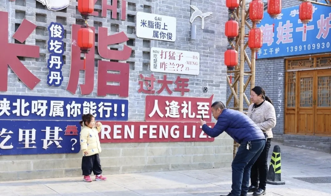 位于县城东南部的米脂窑洞古城,始建于北宋初年,历经元、明、清、民国四朝修缮扩建,至今已逾千年。漫步古城,古色古香的咖啡店里飘出醇香,布满鲜花的玻璃花房引人驻足,陕北婚俗特色主题窑洞别有风味,貂蝉故里汉服馆华服多样,最吸引人的是一面挂满米脂方言的“方言墙”:“扛硬”“足劲”“水圪灵灵”……诙谐生动的方言吸引游客好奇跟读、打卡拍照。新型文旅元素的加入,让千年古城“潮”了起来。