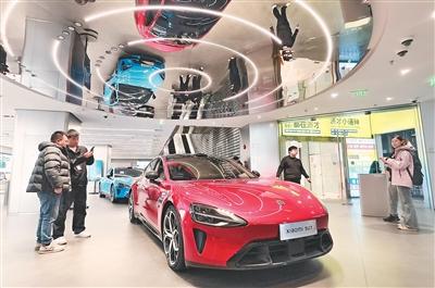 近日,小米新一代SU7新能源汽车上市,全系标配激光雷达和HAD辅助驾驶功能,吸引消费者选购。图为上海小米旗舰店内,消费者在了解新上市新能源汽车。