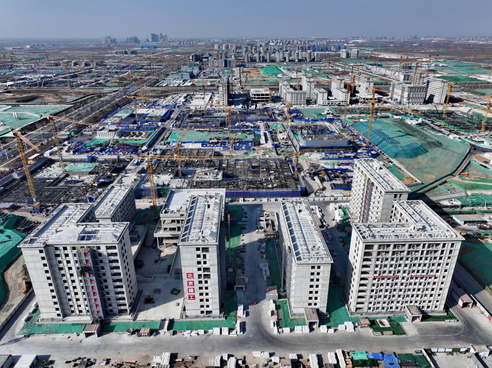 这是位于雄安新区起步区的首批4所北京疏解高校雄安校区建设现场(2月11日摄,无人机照片)。新华社记者牟宇 摄