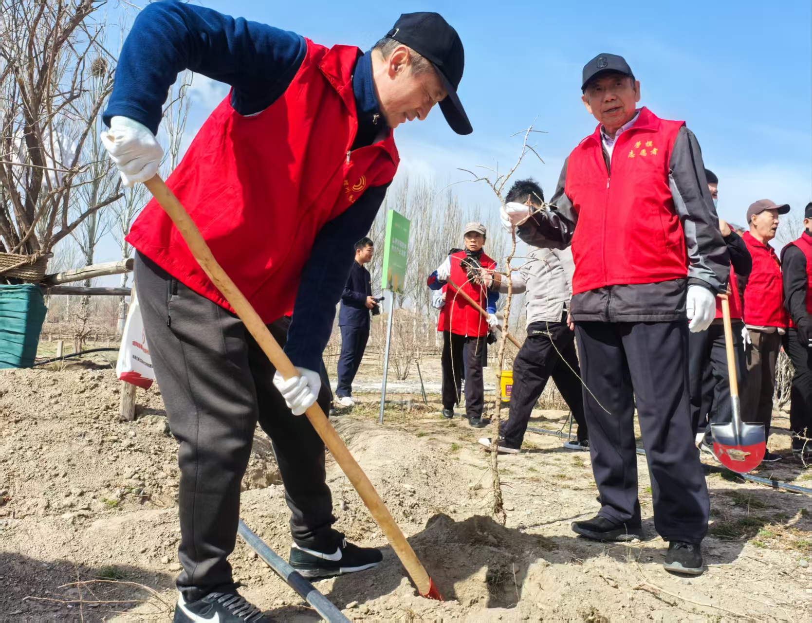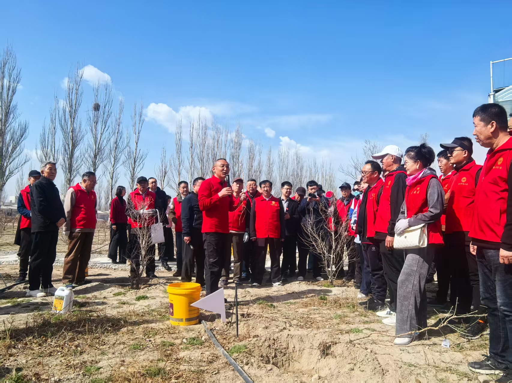 活动现场,劳模代表宣读《倡议书》,号召大家积极参与植绿、爱绿、护绿行动。百瑞源公司党支部书记、董事长郝向峰介绍了枸杞种植基地及劳模创新工作室情况;庄园技术研发总工郝万亮现场讲解枸杞树种植技术要点,为植树活动提供专业指导。