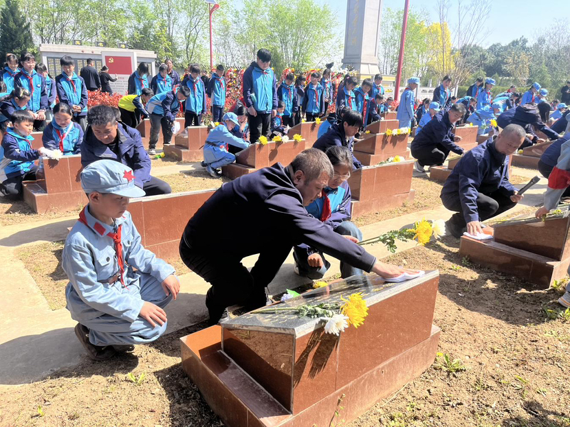 仪式最后,全体人员缓步瞻仰烈士纪念碑,认真擦拭墓碑、敬献小菊花,用质朴行动告慰先烈英灵,铭记那段烽火岁月里的牺牲与奉献,将课堂上感悟的革命精神,转化为缅怀先烈、立志前行的实际行动。此次活动以“周至民嘴”宣讲为核心纽带,将红色宣讲与徒步实践、清明祭扫深度结合,是竹峪镇中心学校推动思政小课堂与社会大课堂深度融合的生动实践。“周至民嘴”用接地气的宣讲方式,让红色故事走进校园、走进童心,既让学生在徒步中锤炼意志,更在聆听宣讲、缅怀先烈中铭记历史、传承红色基因,既落实了立德树人根本任务,更彰显了基层理论宣讲品牌的育人效能,切实提升了思政教育的针对性和实效性。