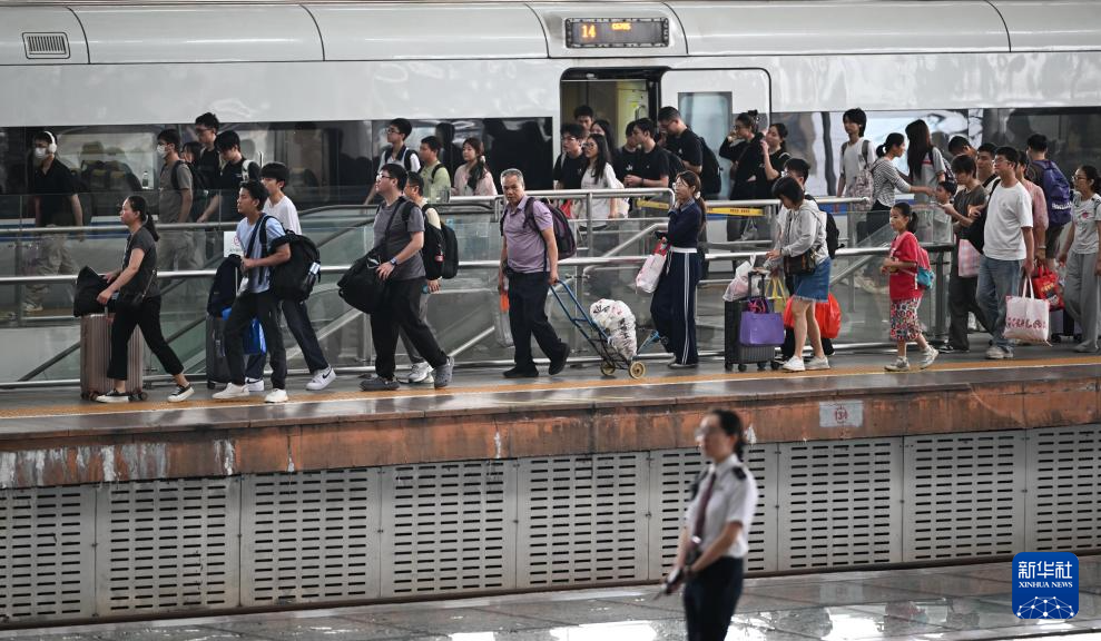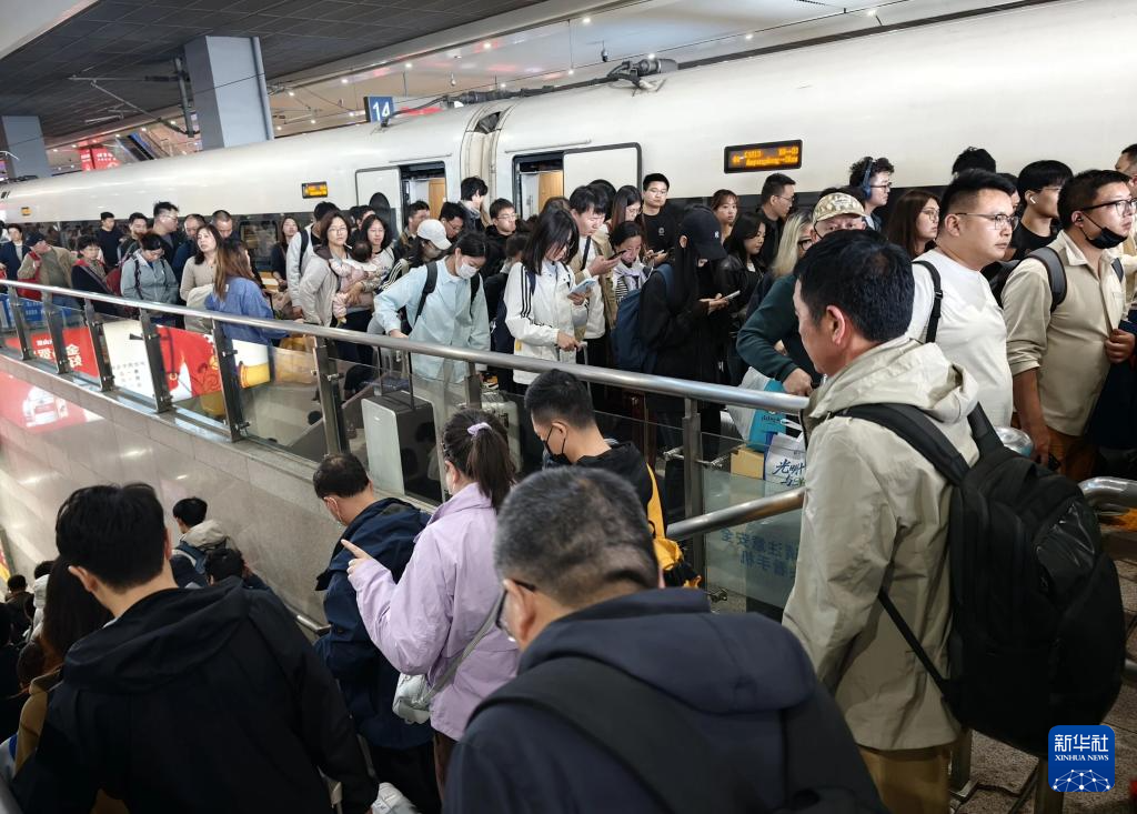 4月6日,在广州南站站台,旅客有序下车出站。新华社记者 邓华 摄