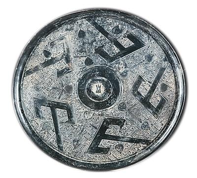 战国时期,宿州属于楚国,深受楚文化影响。宿州市博物馆收藏的战国“山”字纹铜镜、楚大布、蚁鼻钱等,均为楚国文物。战国时期铸镜业发达,铜镜种类繁多,其中,“山”字纹镜颇具特色。馆藏战国三山镜为典型的楚式镜,圆形,三弦钮座,镜背纹饰由地纹与主纹组合而成,地纹为羽状纹,主纹为3个倾斜的“山”字纹,向右旋。五山镜的纹饰除了“山”字纹与羽状纹之外,还有似心形的花瓣纹,十分精美。