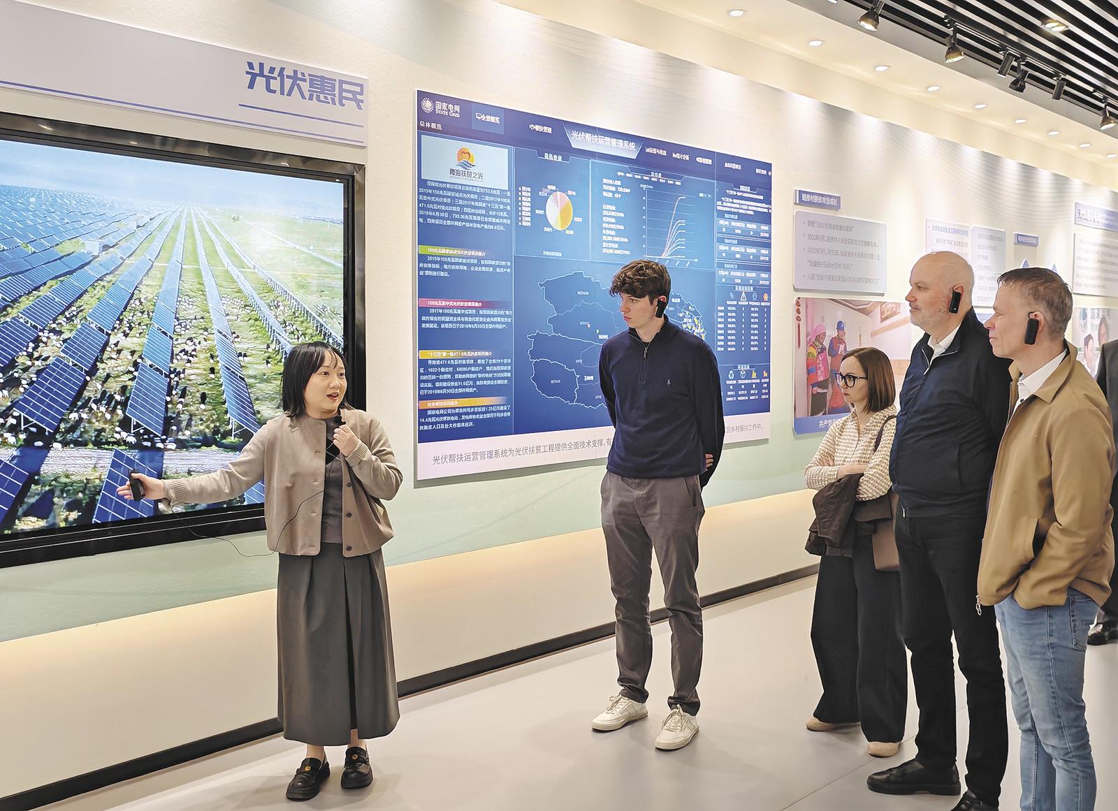 在青海省清洁能源和绿色算力调度中心,外宾了解甘肃省光伏惠民情况。