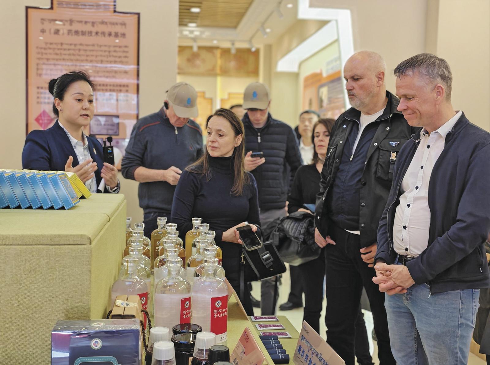 在青海省藏医院,外宾了解藏药产品。