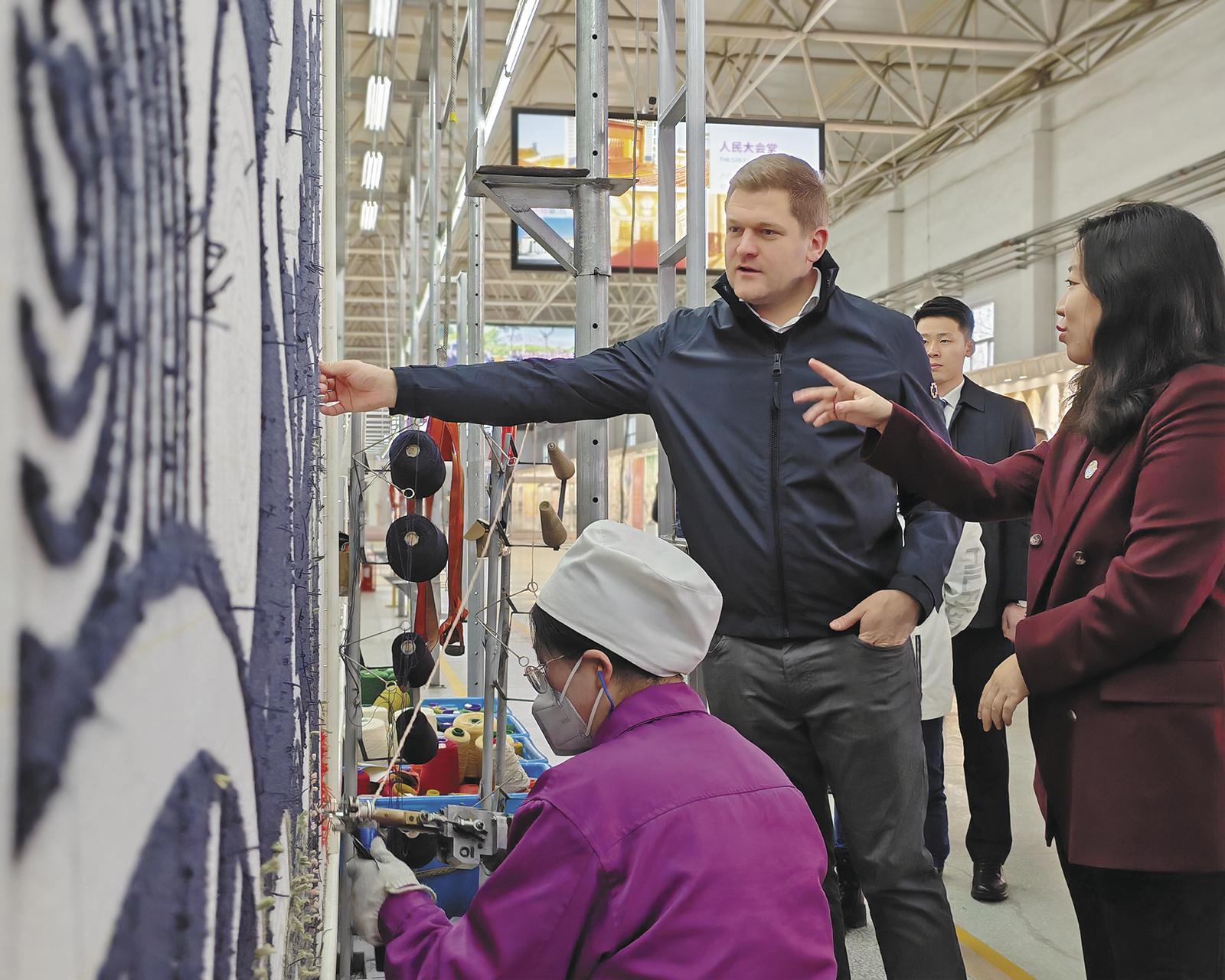 青海的绿色发展,既有清洁能源产业的“硬核实力”,也有特色产业的“温润活力”。在圣源地毯集团有限公司,代表团见证了藏毯从羊毛到艺术品的完整蜕变,也读懂了非遗技艺与现代发展的完美融合。“终于理解了藏毯为何拥有如此珍贵的价值。”代表团成员、奥地利联邦议会人民党党团主席哈拉德·希默尔了解到手工编织技艺的复杂性后,由衷赞叹中国匠人的坚守。“每一件藏毯都承载着独特的风土人情,就像奥地利的特色产业一样,都是文化传播的重要载体,双方可以相互学习、彼此借鉴。”