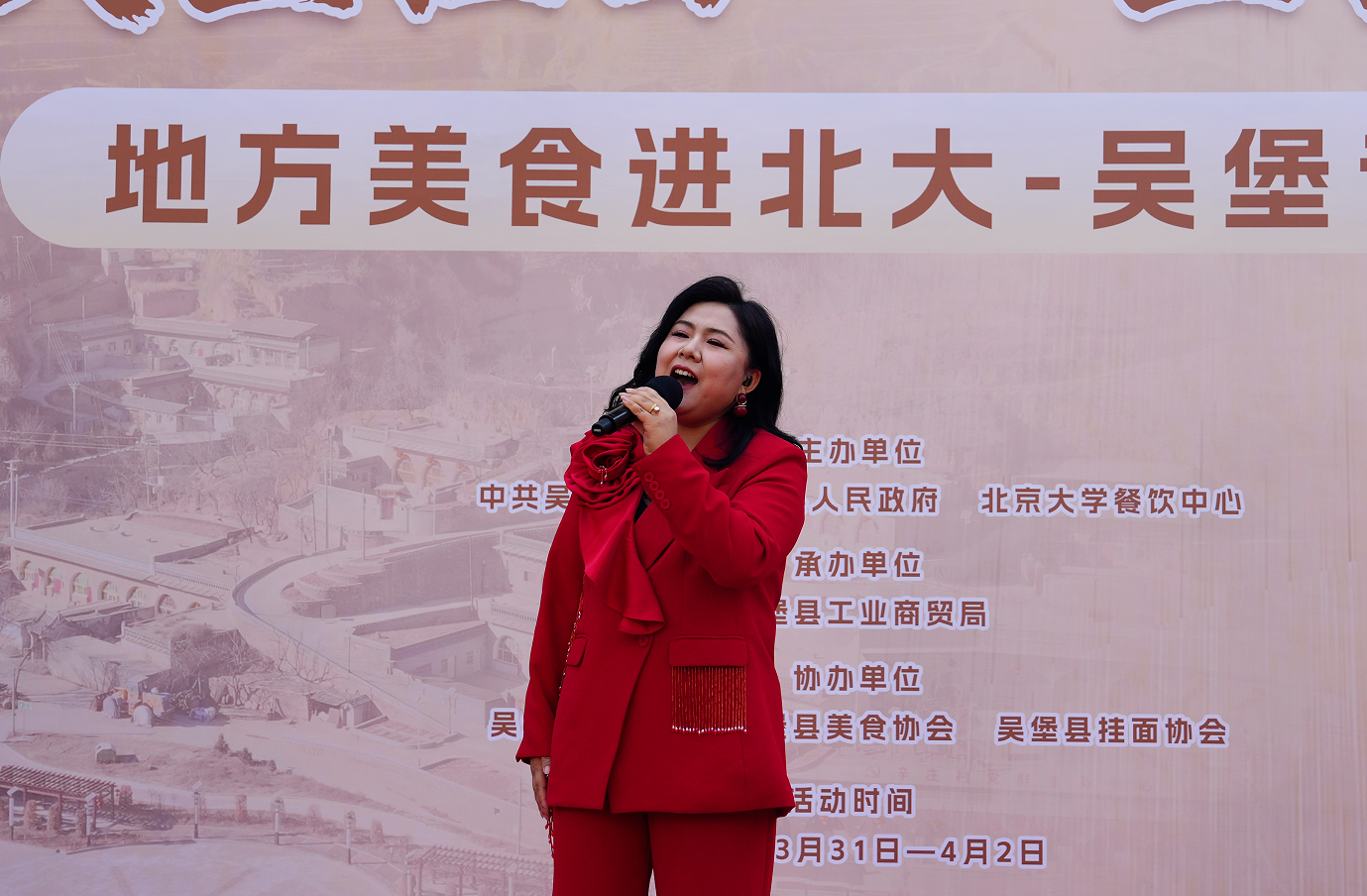 中午,农园食堂北门外小广场,陕北民歌高亢悠扬,唢呐独奏激昂豪迈,吸引了许多北大师生驻足观看、拍照打卡,现场掌声与喝彩声不断。展演现场,陕北民歌优秀传承人弓萍带来《赶牲灵的人儿在北京》《家乡有棵幸福树》,歌声里满是黄土高原的辽阔与吴堡儿女的家乡眷恋;吴堡籍民俗歌手丁文军唱响《一把挂面不零卖》,全国劳动模范、吴堡手工空心挂面非遗代表性传承人张彦兵现场展示挂面制作技艺,歌声颂美食,匠心展非遗,让观众直观感受吴堡手工空心挂面的独特魅力;陕北原创音乐人高爱佳演绎经典陕北民歌《东方红》,婉转旋律勾起浓浓乡情;国家级唢呐演奏家、中央民族乐团一级演员牛建党带来的唢呐独奏《信天游随想》,高亢嘹亮的旋律将陕北人的豪迈与热情展现得淋漓尽致。