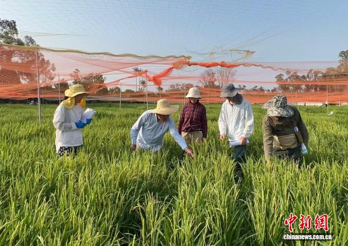 资料图:科研团队成员在田间观察水稻表型,为抗病品种培育获取关键数据。(中国科学院分子植物科学卓越创新中心 供图)