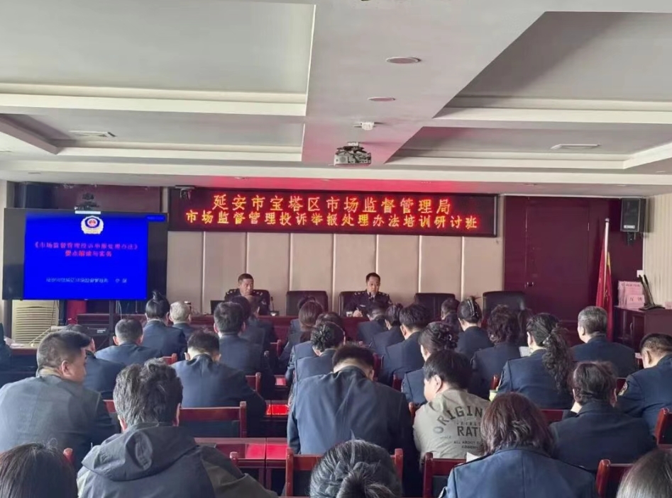 为深入贯彻落实新修订的《市场监督管理投诉举报处理办法》,进一步夯实基层市场监管工作基础,全面提升基层投诉举报处置能力与跨区域案件办理质效。4月9日,延安市宝塔区市场监督管理局举办专题《市场监督管理投诉举报处理办法》培训研讨班。局机关各业务科室负责人、各市场监管所投诉举报处置分管负责人及业务骨干和检测站相关工作人员共60余人参加此次培训。