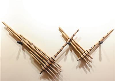 大关的竹木资源丰富,这为制作芦笙提供了上好的材料。在王爱华的工作室,一根根黄色竹管、一截截原色木料整齐排放。“优质的芦笙,选料要精挑细选、精准把控。”王爱华一一介绍:木料选用杉木,且截取纹路好、无疤节的部分;竹子选用苦竹,竹龄要长,直径大约2至3厘米;桦槁树皮要求颜色较好、厚度适中、韧性极佳……