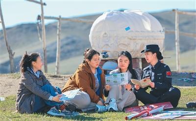 4月13日,新疆出入境边防检查总站阿勒泰支队吐尔洪边境派出所联合吐尔洪司法所、吐尔洪乡综治中心组成宣传小组,深入牧区开展国家安全主题教育。