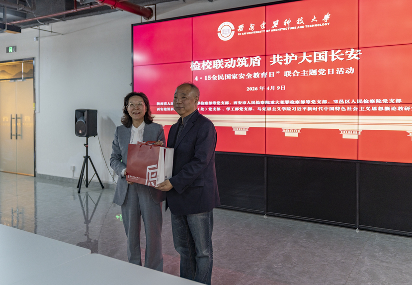 近日,陕西省检察院重大犯罪检察部党支部联合陕西省女检察官协会、干部处党支部、普通犯罪检察部党支部、西安市检察院干部处党支部、西安市检察院重大犯罪检察部党支部、西安市鄠邑区检察院刑事检察部党支部与西安建筑科技大学保卫处党支部、学生处党支部、马克思主义学院习近平新时代中国特色社会主义思想概论教研室党支部,于西安建筑科技大学草堂校区共同开展“4·15”全民国家安全教育日主题党日活动。