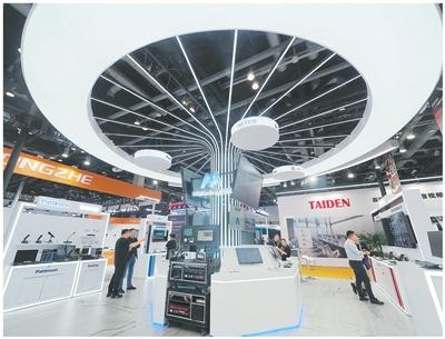 在北京国际视听集成设备与技术展览会上,观众在参观AI视频设备。