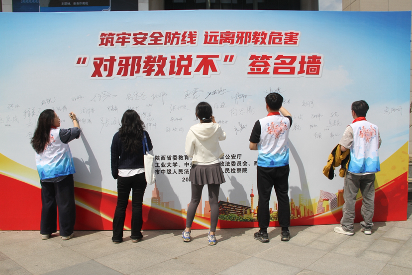活动现场,循环播放的反邪教警示教育视频吸引众多师生驻足观看。在“对邪教说不”签名环节,与会领导和广大师生在签名墙上郑重签下名字,表达坚决抵制邪教的决心。整齐摆放的宣传展板,用一幅幅图片、一个个案例,直观展现邪教的骗人伎俩与危害。西安市公安局与西北工业大学学生艺术团联袂呈现的精彩演出将活动气氛推向高潮,现场不时响起热烈掌声。西工大学生董子瑜说:“这次活动内容丰富、形式多样,让人耳目一新、印象深刻。一个个精彩的反邪教文艺节目让大家在笑声和感动中学会保护自己。作为新时代大学生,我们不仅要自己擦亮眼睛,还要宣传带动身边人一起看清邪教本质,自觉抵制邪教。”