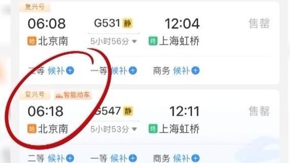 购票界面标有“复兴号”+“智能动车”字样,表示旅客所乘列车属于复兴号动车组升级款。全车的噪声更低,在功能上也有所升级。比如在二等座的车厢中增设了USB充电接口,在一等座的车厢中还增设有可调节的头靠以及电动腿靠,躺着更舒适。