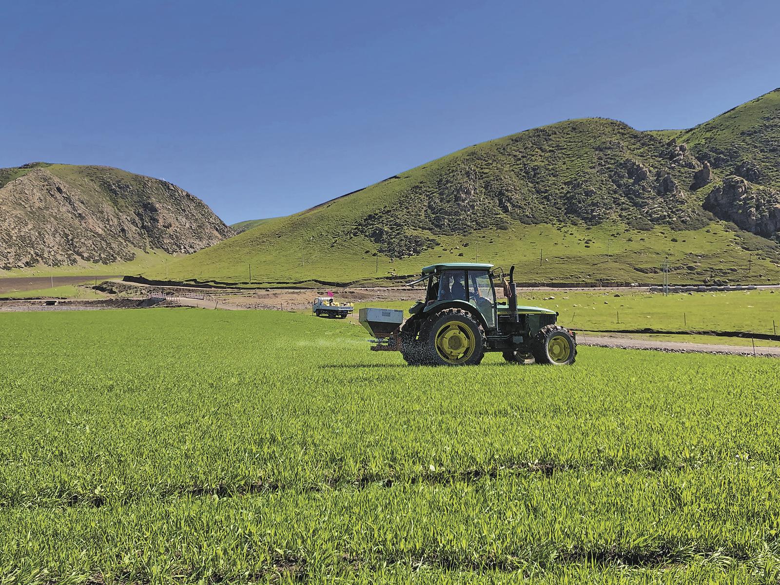 泽库县饲草机械化种植。